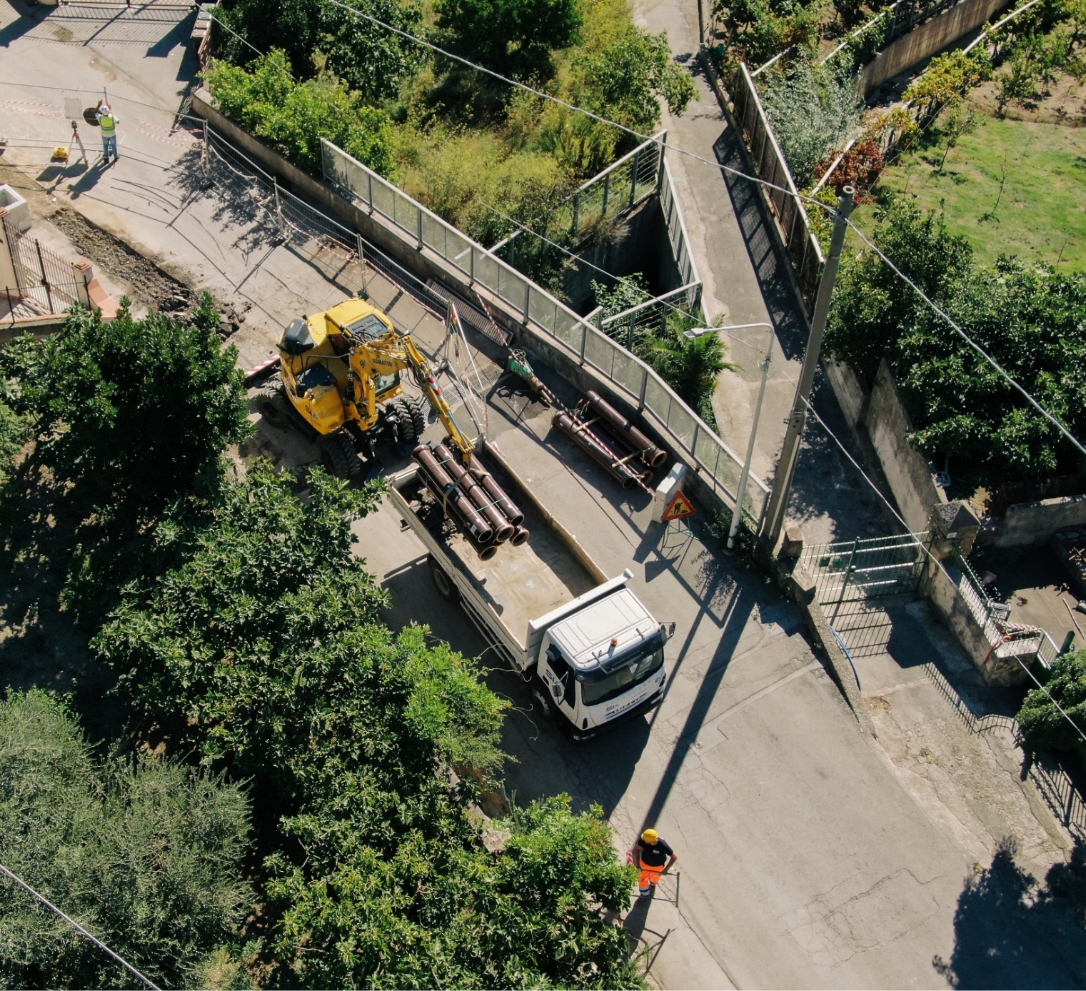 Oltre alla posa delle condotte, SIA S.r.l. si occupa della realizzazione di tutte le opere accessorie necessarie al funzionamento della rete fognaria. Tra queste: manufatti di ispezione, sfioratori, camerette e stazioni di sollevamento, realizzate sia in calcestruzzo armato gettato in opera sia prefabbricate, con rivestimenti interni in piastrelle, resine epossidiche o materiali termoplastici (PP, PRFV, HDPE, ecc.). L’azienda ha inoltre maturato esperienza nella costruzione di stazioni di sollevamento complete di apparecchiature elettromeccaniche. Tra le opere più rilevanti, si distingue la posa, nell’ambito della nuova fognatura del Comune di Torre Annunziata per conto di GORI S.p.A., di una delle più grandi stazioni prefabbricate in PRFV mai installate in Italia.